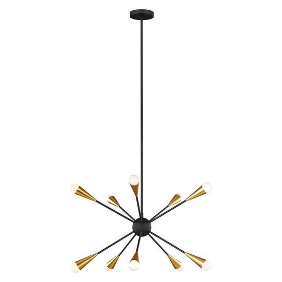 Candelabru Jax – 10 becuri, design Starburst Art Deco, Finisaj Midnight Black cu accente Burnished Brass