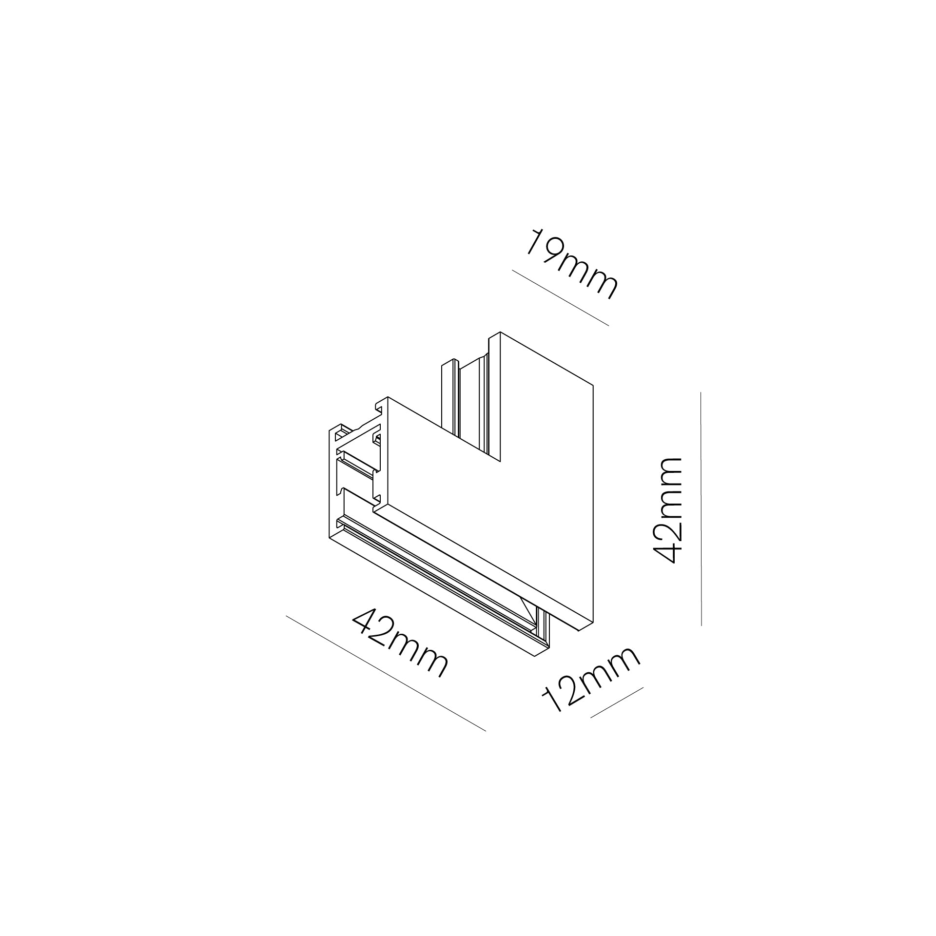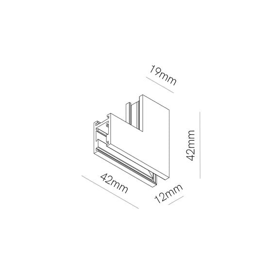 Conectorul L interior de tavan-perete pentru șină aplicată 48V realizează o trecere curată la 90° din planul tavanului pe perete, menținând continuitatea electrică și polaritatea circuitului. Oferă aliniere mecanică precisă între tronsoane și un aspect impecabil în trasee perimetrale, scafe sau zone de accent verticale, cu montaj rapid prin inserție la capetele șinelor.