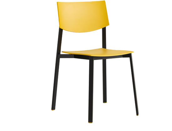 Șezutul și spătarul sunt realizate din polipropilenă post-industrial reciclată, disponibilă în variate culori, care pot fi asortate cu capacul spătarului și picioarele.