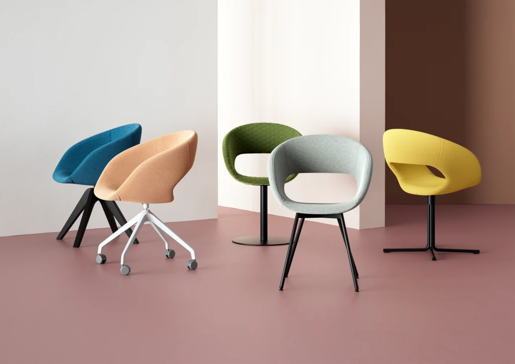 Construit pe un cadru solid din oțel și îmbrăcat în spumă poliuretanică de densitate mare (70 kg/m³), Maia oferă stabilitate, durabilitate și confort pe termen lung. Datorită gamei variate de baze din lemn sau metal și selecției extinse de materiale textile, scaunul poate fi personalizat pentru a se potrivi perfect oricărui tip de interior — de la rezidențial la commercial.